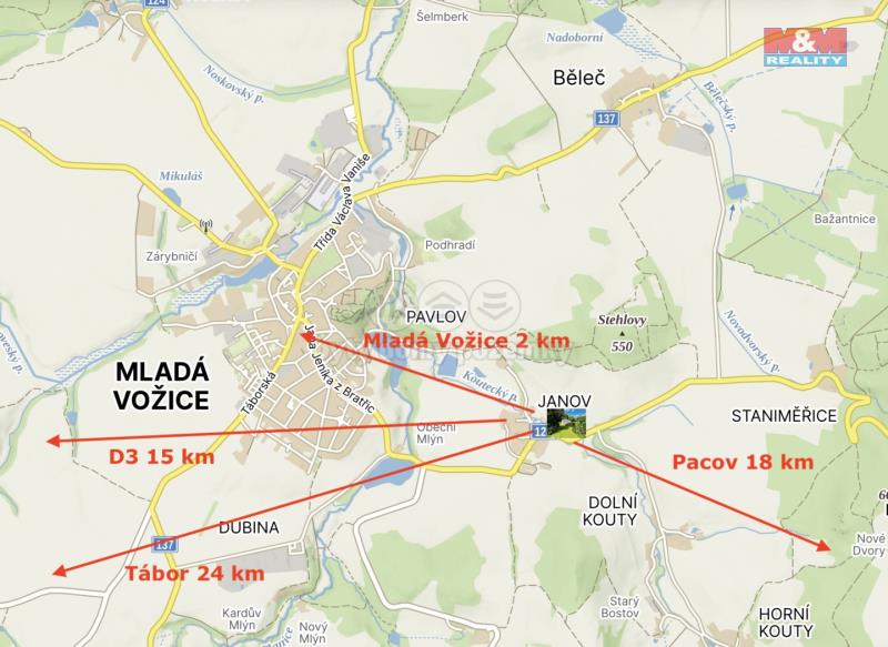 Nabízíme k prodeji prostorný rodinný dům v malebné obci Janov u Mladé Vožice. Tato zděná chalupa o užitné ploše 143 m² stojí na okraji obce, na klidném a krásném místě s rozlehlým pozemkem o výměře 1276 m². Dům prošel rekonstrukcí v roce 1982 včetně nové izolace. V přízemí naleznete kuchyň, pokoj, koupelnu se sprchovým koutem a samostatné WC. V patře jsou k dispozici velký pokoj, dvě ložnice a příprava na koupelnu. Vytápění je řešeno krbovými a akumulačními kamny, vodu zajišťuje vlastní kopaná studna, odpad je sveden do septiku s přepadem do trativodu. Na pozemku se nachází garáž a stodola, je možné přikoupit pozemek o celkové ploše 1961 m², vedený jako trvalý travní porost, který na dům navazuje. Ideální pro ty, kteří hledají klidné bydlení v přírodě, vhodné jako chalupa nebo pro trvalé bydlení.