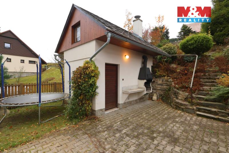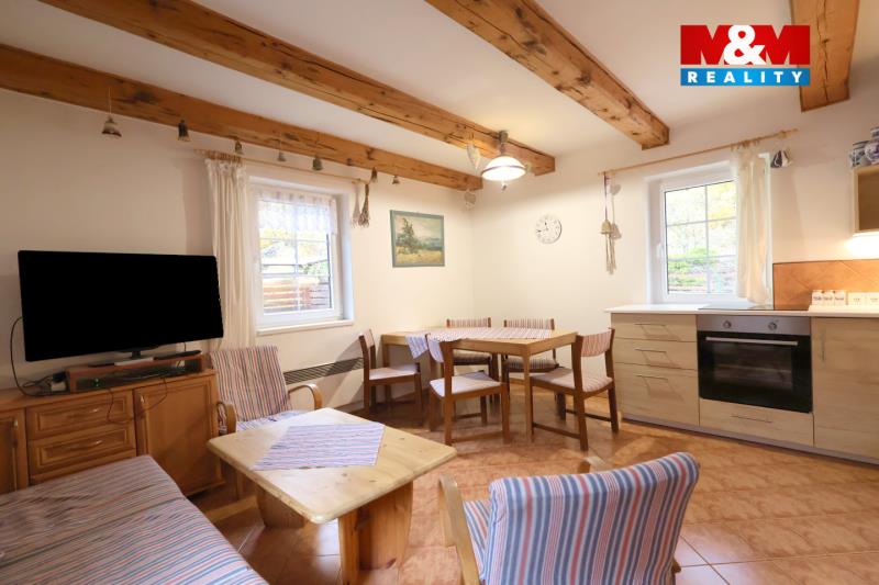 Nabízíme k prodeji dvě útulné rekreační chalupy v malebné obci Lipová-lázně v Jeseníkách. Chalupy jsou vhodné jak pro vlastní rekreaci, tak jako investice pro krátkodobé pronájmy. Velká chalupa (108 m²) poskytuje ubytování až pro 17 osob včetně samostatného apartmánu s vlastním vchodem a zimní zahradou. V přízemí je prostorný obývací pokoj s kuchyní, jídelním koutem a krbovými kamny, v patře čtyři ložnice a dvě koupelny. Vytápění zajišťuje tepelné čerpadlo nebo krbová kamna, parkování je možné u objektu. Malá chalupa (67 m²) nabízí kapacitu až pro 8 osob, plně vybavenou kuchyň, krbová kamna, tři ložnice, dvě toalety a koupelnu s vanou. K dispozici je Wi-Fi, satelitní TV, pergola s grilem, udírna, pískoviště, lyžárna i úschovna kol. Obě chalupy jsou v perfektním stavu a nabízejí pohodlí, soukromí a atraktivní polohu v srdci Jeseníků s výbornou dostupností zimních středisek i turistických tras. Více informací u RK.