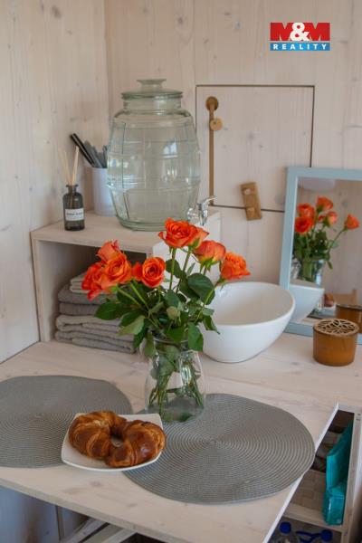 Nabízíme k prodeji originální designovou stavbu ve formě posedu s atmosférou klidu a soukromí, ideální pro rekreaci i jako investici do oblíbeného glampingu. Stylová stavba je citlivě a vkusně zasazena do přírody a nenarušuje okolní krajinu. Velké panoramatické okno nabízí krásné výhledy i možnost nerušeného pozorování zvěře. Pod objektem se nachází dřevěná podesta vhodná k relaxaci. Interiér poskytuje komfort v podobě manželské postele a skládacího stolku s posezením. K dispozici je fotovoltaický panel pro napájení LED osvětlení, varné konvice i sprchy. V chladnějších dnech zajišťuje tepelný komfort bezpečné plynové vytápění. Součástí je zahrada o výměře 1 474 m² s ohništěm a ovocnými stromy. Dle územního plánu města je možné na pozemku postavit další rekreační objekt o ploše až 40 m². Nemovitost je vhodná i ke krátkodobému pronájmu. Ve městě je k dispozici kompletní občanská vybavenost i možnosti aktivního odpočinku. Cena je konečná a zahrnuje kompletní právní servis.