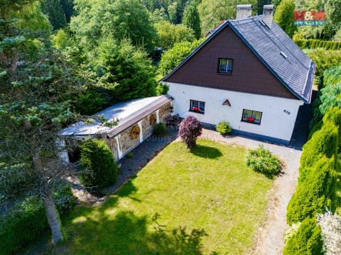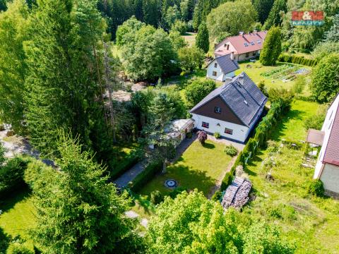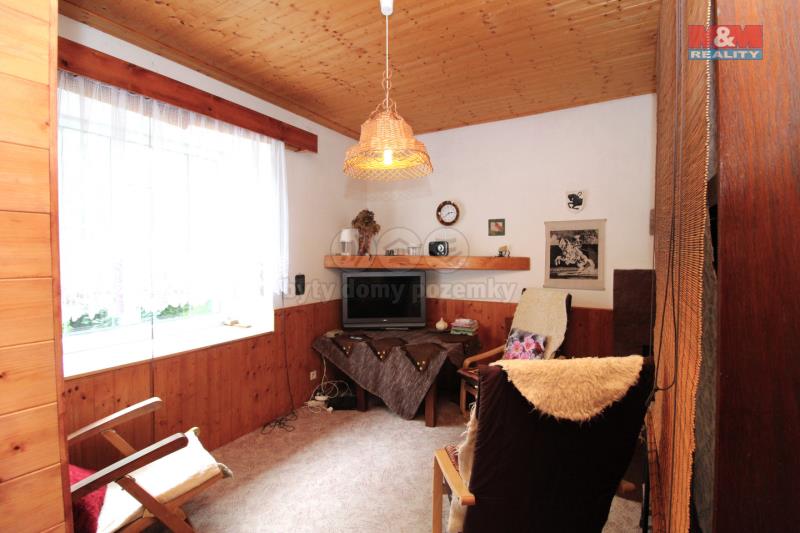 Hledáte ideální místo pro odpočinek, kde se snoubí komfort s kouzlem přírody? Nabízíme vám zděnou chalupu v bezvadném stavu, která okouzlí svým útulným a zároveň prostorným interiérem. Dispozice chalupy je promyšlená a nabízí pohodlí celoročně. V přízemí najdete kuchyň spojenou s jídelnou a obývacím pokojem, ložnici, koupelnu s vanou a samostatnou toaletu. V patře se nacházejí dvě prostorné ložnice. Interiér je vkusně obložený dřevem a dřevěná okna dodávají chalupě příjemnou a tradiční atmosféru.Topení zajišťují krbová kamna, která umožňují komfortní využití chalupy i mimo sezónu. Voda je čerpána z vlastní studny a odpad je řešen septikem s přepadem do trativodu. Součástí pozemku je garáž a zahradní domek, vše situované na krásném, rozlehlém pozemku zajišťujícím naprosté soukromí. Okolní příroda a lesy vytvářejí ideální prostředí pro relaxaci a útěk z rušného městského života. Tato chalupa je ideální volbou pro všechny, kdo touží po spojení komfortu a klidu v nádherné přírodě.