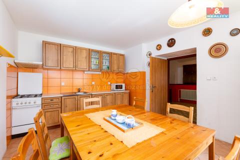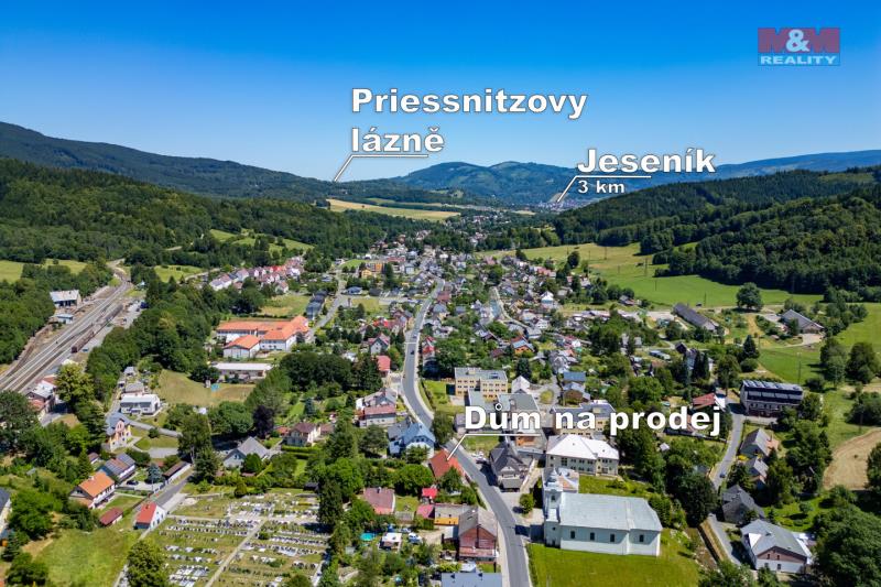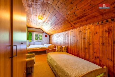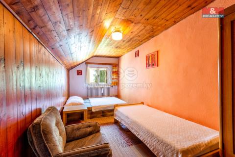 Užijte si klid a krásu podhůří Jeseníků v obci Lipová-lázně – ideálním místě pro celoroční rekreaci, trvalé bydlení i investici. Nabízíme k prodeji chalupu o dispozici 5+1 s prostornou zahradou. Užitná plocha domu činí 190 m², celková plocha pozemku je 1 442 m². Dispozice: V 1. NP se nachází obývací pokoj, ložnice, kuchyně, koupelna se sprchovým koutem a toaletou, samostatné WC, spíž s přístupem do sklepa se skladem uhlí a prostorná chodba, ze které je přímý vstup na verandu a dále na zahradu. Po dřevěném schodišti se dostanete do 2. NP, kde jsou další tři ložnice, chodba a půda. Za domem je oplocená, rovinatá zahrada s pergolou, posezením, grilem, ohništěm, kůlnou a vzrostlými stromy. Ze zahrady (i z přední části domu) je vstup do čtyř původních hospodářských místností, využitelných jako garáž, dílna, klubovna nebo domácí wellness. Dům je napojen na vodovod, kanalizaci, plyn a elektřinu. Vytápění zajišťuje plyn. kotel, v obývacím pokoji je krb, ohřev vody zajišťuje el. bojler.
