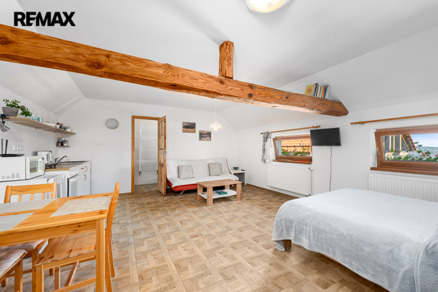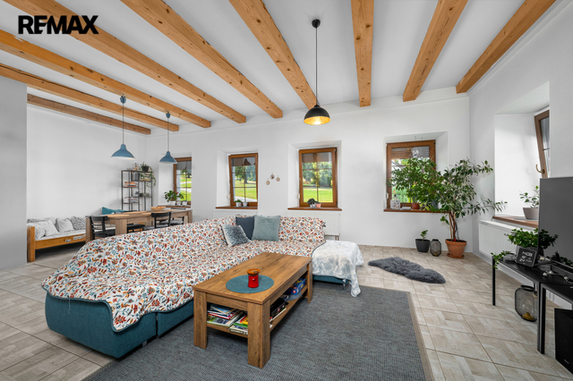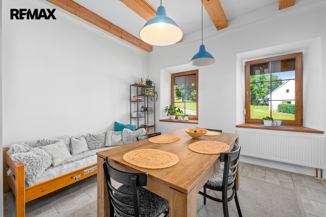 Ve výhradním zastoupení majitele nabízíme k prodeji jedinečnou nemovitost v malebné vesnici Klenovice, která poskytuje výbornou kombinaci klidného trvalého bydlení, relaxační rekreace, případně podnikatelských možností. Klenovice jsou malá vesnice, část obce Mičovice v okrese Prachatice. Vesnice horského typu pravidelného tvaru s velikou návsí, kterou obklopuje cca 25 domů. Jak je typické pro oblast východní části Šumavy, jedná se o velké patrové domy, jež jsou doplněny menšími přízemními domy. V současné době už jsou téměř všechny nemovitosti krásně opraveny, rovněž náves prošla citlivými úpravami, vesnice tak působí velmi příjemným dojmem. Prodávaná nemovitost se nachází na rohu návsi na opačné straně, než je příjezd do vsi. Tvoří ji velká stavba s navazující zahradou a přilehlým pozemkem, celková velikost pozemku činí 1.112 m2. Dispozičně nemovitost nabízí 4+2, 3x koupelna. Podlahová plocha nemovitosti je 226 m2, rozděleno na 1.NP a 2.NP 1.NP 112 m2: vstup/předsíň, chodba, kuchyně, velký obývací pokoj, koupelna s WC, prádelna vč. technické místnosti, kotelna + sklad paliva. 2. NP 114 m2: 2x velký pokoj, koupelna (vana, sprchový kout, umyvadlo, WC) + apartmán s vlastní koupelnou a samostatným vchodem schodištěm z venku. Nemovitost je částečně podsklepena, 25 m2. Součástí nemovitosti je zastřešené sezení s dalším možným využitím, užitná plocha 39 m2. Navazující zahrada o rozloze 443 m2. Další pozemek u nemovitosti o výměře 457 m2 je za výhodných podmínek pronajat od státního pozemkového úřadu s předkupním právem. Za zmínku stojí půdní prostor o výměře cca 80 m2. Prostor je prosvětlen okny a nabízí další možnosti individuálního využití. Vytápění je řešeno kotlem na pevná paliva se zásobníkem, nebo elektrokotlem – obojí s rozvodem do radiátorů. Voda a kanalizace obecní. V roce 2017 prošla nemovitost kompletní rekonstrukcí interiéru: rozvody vody, odpadu, elektroinstalace, podlahy, omítky, koupelny atd. Díky flexibilitě prostoru a jeho multifunkčnímu využití je tato nemovitost ideální pro ty, kteří hledají kombinaci soukromého bydlení, odpočinku a možnosti podnikání. Okolní příroda a malebné scenérie poskytují ideální prostředí pro trvalé bydlení, kde můžete relaxovat a užívat si klidu, nebo pro rekreaci s rodinou a přáteli. V případě zájmu, kontaktujte makléře nabídky. Rádi vás uvítáme na prohlídce. Prodávající si vyhrazuje právo vybrat kupujícího na základě jím zvolených kritérií.