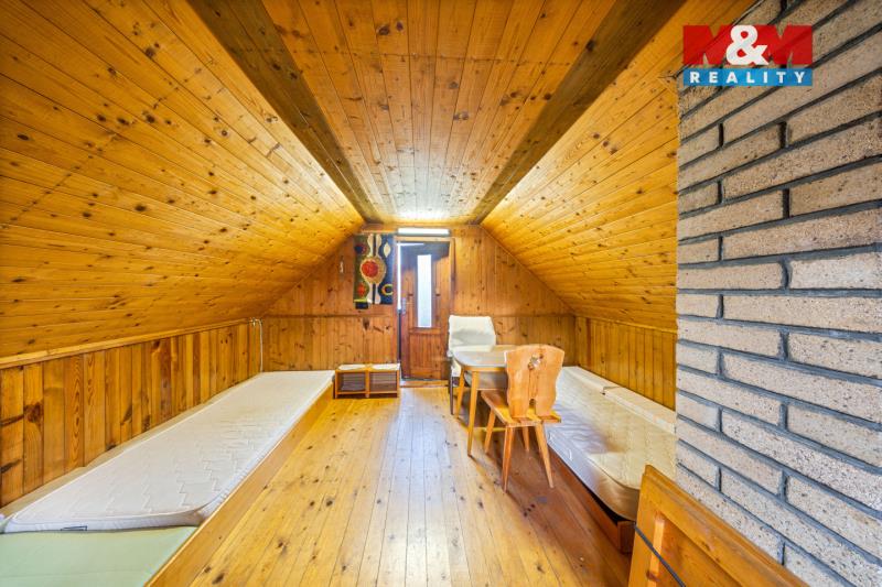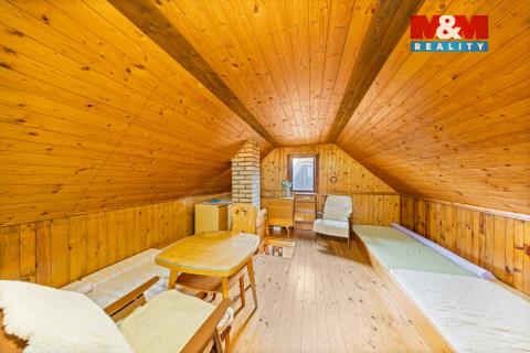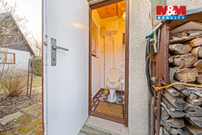 Nabízíme k prodeji chatu na vlastním pozemku v klidné lokalitě v chatové osadě. Celková plocha pozemku činí 656 m², vč. chaty o zastavěné ploše 16 m², možné rozšíření na 25 m². Chata částečně podsklepená – sklep má přibližně 12 m² a nabízí praktický úložný prostor. Nemovitost disponuje vlastním WC. Objekt je napojen na užitkovou vodovod, odpad je řešen pomocí septiku (žumpy). Pozemek je svažitý, což spolu s umístěním chaty vytváří pěkný výhled na rybník a příjemnou atmosféru pro rekreaci a odpočinek. Lokalita nabízí klidné prostředí ideální pro víkendové pobyty i relaxaci v přírodě. Cela osada je oplocena, ale je možnost zajet až k chatě. Doporučujeme prohlídku.