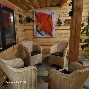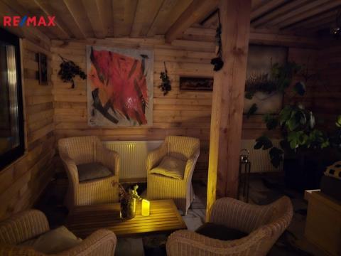 Velkou výhodou je prostorná terasa a výhledy do zeleně. která pojme až 40 lidí- ideální pro venkovní posezení, oslavy, nebo grilování s přáteli.