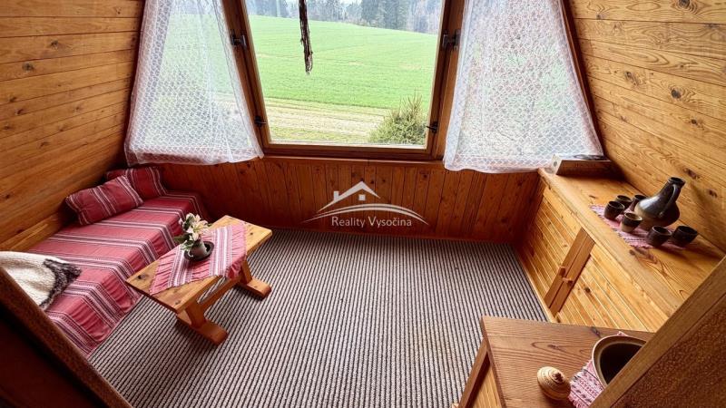 Nabízíme k prodeji stylovou zděnou chatu 2+kk v nádherném klidném lesním prostředí nedaleko Ředkovského rybníka. Chata byla kolaudována v roce 1967 a nachází se ve velmi dobrém technickém stavu, připravena k okamžitému užívání. V přízemí najdete předsíň, kuchyňský kout a útulný obývací pokoj s krbem, který bez problémů vytopí celý objekt a dotváří příjemnou atmosféru. V podkroví se nachází ložnice a samostatná relaxační místnost s krásným výhledem do okolní přírody. Nemovitost je napojena na vlastní vrt (37 m) s ponorným čerpadlem, zavedena elektřina 220 V. Voda je přivedena do interiéru (umyvadlo se studenou vodou). Toaleta je řešena suchým WC. Na pozemku se dále nachází dvě uzamykatelné dřevěné boudy, ideální pro uskladnění nářadí či sportovního vybavení. Příjezd je zajištěn po zpevněné obecní cestě až k pozemku, kde je možné pohodlně parkovat. Chatu je možné upravit či přestavět dle vlastních představ (např. vybudování koupelny, septiku, garáže nebo zastřešeného parkovacího stání a další úpravy). Stávající majitel již řešil možnost vyjmutí části pozemku z lesního fondu a má k tomuto kroku předběžné souhlasy příslušných orgánů. V okolí se nachází vyhledávaný hrad Lipnice nad Sázavou, zatopené lomy vhodné ke koupání a celkově krásná příroda Vysočiny ideální pro turistiku i relaxaci. Výborná dostupnost do Prahy (cca 100 km po dálnici D1). Ideální místo pro odpočinek, rekreaci i víkendové úniky z města v naprostém soukromí a klidu přírody.