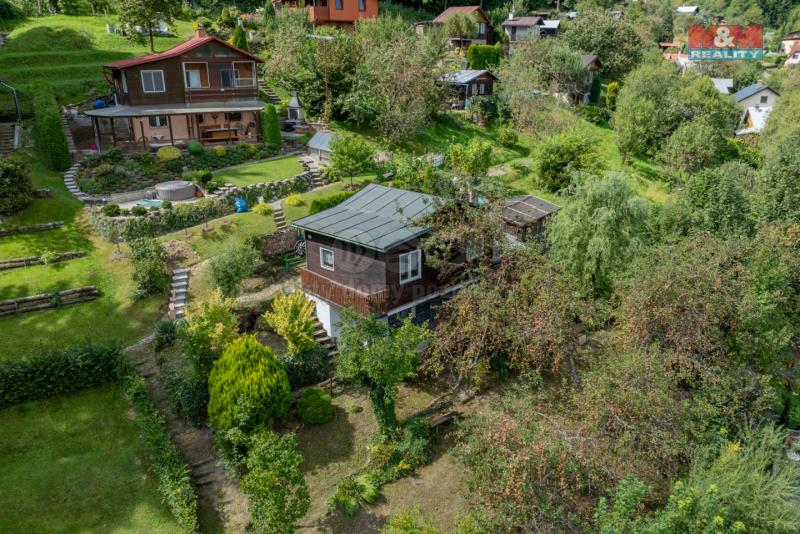 Nabízíme k prodeji podsklepenou, zděnou chatu s přiděleným evidenčním číslem. Do chaty je zavedena elektřina, voda z vlastní studny nacházející se na pozemku a odpad je sváděn do jímky. V přízemí najdeme místnost s krbovými kamny na tuhá paliva a malý pokoj, v suterénu pokoj s kamínky, sklípek a WC. Posezení venku je možné na terase u krbu. Svažitá zahrada je upravena do teras, na kterých rostou ovocné stromy, možno vybudovat zeleninové záhony. Vzhledem k poloze je zajištěno soukromí a nádherný výhled. Ideální pro ty, kdo chtějí uniknout do přírody. Náš hypoteční specialista Vám navrhne nejvhodnější financování pro tuto nemovitost. Pro více informací kontaktujte makléře. Doporučujeme prohlídku.