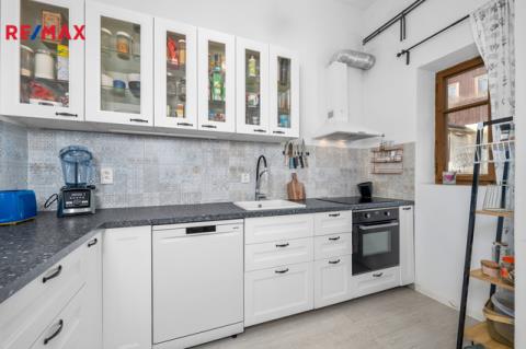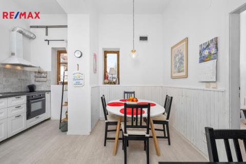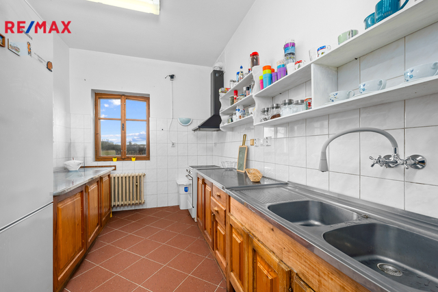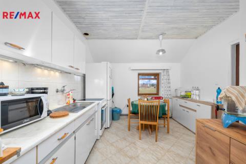 Samostatný vchod vedle hlavního vstupu má v přízemí i bytová jednotka, která je momentálně využívaná k trvalému bydlení. Tato jednotka má dispozici 3+1.
