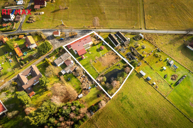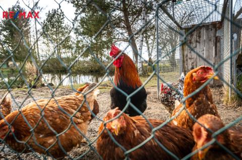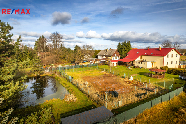 K nemovitosti náleží rozlehlý pozemek o rozloze 2.783 m2, kde je k dispozici přírodní jezírko- rybník, velký výběh pro chov slepic, altánek, pergola, udírna a garáž či dílna. Je zde dostatek prostoru pro pěstování plodin, či výstavbu dětského hřiště nebo bazénu. Rozloha pozemku nabízí v tomto směru široké využití.