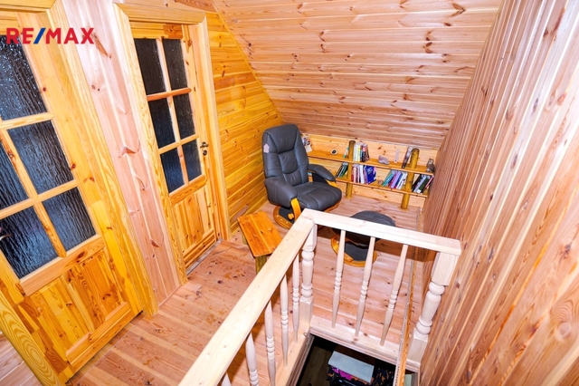 Nabízíme k prodeji výjimečnou rekreační chatu po rozsáhlé rekonstrukci, situovanou jen pár metrů od vodní nádrže Lipno, v severní části u obce Horní Planá – osada Hory. Tato část Lipna spadá do CHKO Šumava a nabízí skutečně panenskou přírodu, klid a atmosféru, kterou na jižní, turisticky vytížené straně nádrže nenajdete. Chata je umístěna ve svahu a má tři podlaží o celkové ploše 83 m² (přízemí, podkroví a garáž). ### Dispozice Přízemí: * vstupní chodba * samostatná kuchyň * hlavní obytná místnost s jídelním koutem * koupelna se sprchovým koutem a WC V obývací části jsou kamna na tuhá paliva. Komínové těleso prochází všemi hlavními místnostmi včetně kuchyně, takže stačí zatopit v těchto kamnech a teplo se rovnoměrně rozvine po celé chatě. Díky tomu je chatu možné komfortně užívat i v chladnějších měsících. Chata je z větší části i zařízena novým kvalitním nábytkem, V obýváku je např. obrovská rohová pohovka, nebo v podkroví je postel na míru z masívu atd. Tady je dobré informovat že majitelka ráda ponechá kompletní vybavení novému majiteli, podmínky záleží na dohodě obou stran. **Podkroví:** * dvě samostatné ložnice * z jedné ložnice vstup na balkon přes celou šířku východní strany * útulné zákoutí na chodbě (ideální čtecí kout či relaxační místo) Podkroví zaujme výrazným dřevěným obložením stěn nebo luxusním kameným obložením komínového průchodu a má celkově velmi příjemnou atmosféru. **Spodní podlaží (částečně zapuštěné ve svahu):** * prostorná garáž Rekonstrukce a technický stav V nedávné době proběhla rozsáhlá rekonstrukce. Interiér je prakticky nový – použity byly kvalitní a nadstandardní materiály. Zaujme zejména luxusně provedená koupelna, masivní přiznané trámy v přízemí. Rekonstrukce ale nebyla úplně dokončena, chata je obyvatelná ale chybí pár detailů. Lokalita – přírodní ráj okolí Lipna Osada Hory spadá pod Horní Planou a nachází se v severní části Lipna, v místě, kde se do nádrže vlévá Vltava. Tato oblast je součástí CHKO Šumava a nabízí klid, čistou přírodu a minimální turistický ruch. Velkým benefitem je soukromá pláž ve správě občanského sdružení Hory, vzdálená cca 300 metrů od chaty (přes lesík nebo po cestě). Na pláži jsou: * dětské herní prvky * hřiště na míčové hry * volejbalové koše * možnost zapůjčení pramic Přístup na pláž mají pouze členové sdružení, což zajišťuje soukromí a klid. Okolí nabízí nepřeberné možnosti vyžití – cyklostezky, turistické trasy různých obtížností, vodní sporty i klidné procházky šumavskou krajinou. Osada má výjimečně přátelské sousedské vztahy. Někteří obyvatelé zde bydlí celoročně, což přispívá k bezpečí. Všechny příjezdové cesty jsou slepé, takže oblast je minimálně zatížena dopravou – prakticky bez provozu aut. Tato chata je ideální volbou pro rodinu hledající klidné místo u vody, milovníky přírody nebo pro ty, kteří si chtějí splnit sen o vlastním zázemí na Šumavě. Pro více informací či domluvení prohlídky mě neváhejte kontaktovat. Rád vám tuto výjimečnou nabídku osobně představím.