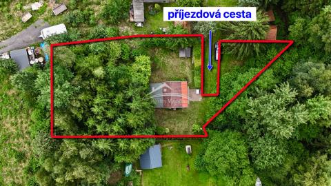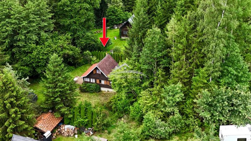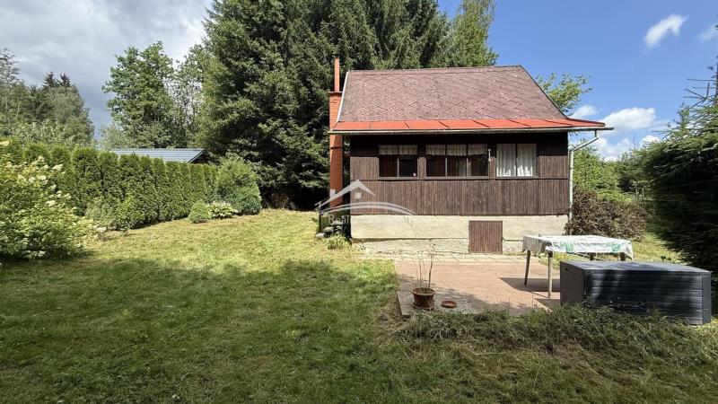 Ve výhradním zastoupení nabízíme velmi pěknou dřevěnou chatu 2+1 na vlastním pozemku o výměře 837 m², situovanou na výjimečném místě uprostřed lesa s naprostým klidem a soukromím. Pozemkem částečně protéká malý potůček, což jen podtrhuje atmosféru místa. Chata z roku 1980 stojí na zděné podezdívce. Je napojena na elektřinu (220 V, částečně měděné rozvody) a užitkovou vodu z vlastní studny (čerpadlo). Součástí je moderní koupelna se sprchovým koutem, splachovacím WC, přípojkou na pračku a bojlerem (47 l). O vytápění se starají kamna na dřevo a tuhá paliva, odpad je řešen jímkou. Před chatou se nachází menší terasa, která má udělanou podlahu z desek Ve výhradním zastoupení nabízíme velmi pěknou dřevěnou chatu 2+1 na vlastním pozemku o výměře 837 m², situovanou na výjimečném místě uprostřed lesa s naprostým klidem a soukromím. Pozemkem částečně protéká malý potůček, což jen podtrhuje atmosféru místa. Chata z roku 1980 stojí na zděné podezdívce. Je napojena na elektřinu (220 V, částečně měděné rozvody) a užitkovou vodu z vlastní studny (čerpadlo). Součástí je moderní koupelna se sprchovým koutem, splachovacím WC, přípojkou na pračku a bojlerem (47 l). O vytápění se starají kamna na dřevo a tuhá paliva, odpad je řešen jímkou. Dispozice: v přízemí předsíň, obývací pokoj, kuchyň, koupelna s WC; v podkroví ložnice. Na pozemku je také menší uzamykatelný zahradní domek (cca 2 × 2 m) a úložné prostory na nářadí. Před chatou se nachází menší zpevněná nezastřešená terasa, která má udělanou podlahu z profilů zn. GRENADECK. Příjezd možný autem až k chatě. Ihned volná k užívání. Místo ideální pro relax, soukromí a odpočinek v přírodě.