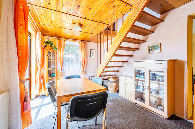 Nabízíme k prodeji rekreační dům o podlahové ploše 76 m² se slunnou a pečlivě udržovanou zahradou o rozloze 938 m², situovaný v malebné obci Lhota u Chříče, na východním okraji CHKO Křivoklátsko. Nemovitost se nachází nad romantickým údolím říčky Javornice a nabízí naprostý klid a pohodlí. Dům je vhodný k celoročnímu užívání. V přízemí se nachází obývací pokoj s krbovými kamny, prostorná kuchyně, jídelna se vstupem do zahrady, koupelna s vanou, samostatná toaleta a veranda. V suterénu pod obývacím pokojem je umístěn menší sklep, ve kterém je instalován bojler pro ohřev teplé vody. V prvním patře naleznete hlavní ložnici s manželskou postelí, pokoj s rozkládacím gaučem, další pokoj s jednolůžkem a otevřený prostor vhodný jako pracovna nebo relaxační kout. Z patra je přístupný balkón s krásným výhledem do okolní krajiny. Pozemek je osázen vzrostlými keři, stromy, trvalkami a nabízí i plochu pro pěstování zeleniny. Kromě toho zde najdete krytou pergolu vhodnou pro posezení s přáteli, přístřešek pro auto, dílnu, dřevník a kůlnu. Voda je čerpána z vrtané studny hluboké 27 metrů a je pitná. Vytápění zajišťují krbová kamna s výměníkem, ohřev vody pak bojler. Dům je ve velmi dobrém technickém stavu a připraven k okamžitému užívání. Obec Lhota je přístupná pouze silnicí ze Slatiny, což jí propůjčuje výjimečný klid. Odlehlost lokality umocňuje hluboké údolí říčky Javornice s malebným Machovým mlýnem. Okolní lesy a stezky jsou ideální pro houbaření, pěší turistiku i cyklovýlety. Lokalita zároveň zůstává skvěle dostupná – v dojezdové vzdálenosti jsou dálnice D5 i D6. Tato nemovitost představuje výjimečnou příležitost k trvalému bydlení v přírodě nebo jako ideální místo pro víkendový odpočinek. Energetická náročnost budovy: G (průkaz nebyl předložen). V případě zájmu mě neváhejte kontaktovat – ráda Vám poskytnu více informací nebo domluvím prohlídku.