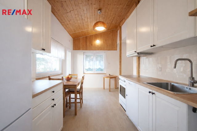 Nabízíme k prodeji příjemnou a pečlivě udržovanou dřevostavbu 4+1 po rozsáhlých rekonstrukcích a modernizaci v letech 2018 a 2025 v obci Solopisky, k. ú. Třebotov, v oblasti CHKO Český kras. Nemovitost je evidována jako objekt k bydlení (vhodná k trvalému bydlení i rekreaci) a je připravena k okamžitému celoročnímu užívání bez nutnosti dalších investic. Užitná plocha činí cca 71 m² a navazuje na dalších 19 m² nové zastřešené terasy + východní terasa cca 7m2. Celková podlahová plocha činí cca 97m². Dispozice 4+1 nabízí světlé místnosti, modernizovanou kuchyni s francouzskými dveřmi na terasu a velmi příjemnou atmosféru celého domu. V celém domě jsou nová kvalitní okna (trojskla) a prosklené vstupní dveře Weber, dvojité zateplení a nová fasáda, nová kuchyně a podlahy (kvalitní vinyl Quick-Step), kompletní výmalba, nové terasy z modřínu, z toho západní zastřešená luxusním polykarbonátem a připravená na případné zvětšení nemovitosti. Proběhly úpravy dispozic/vestavba nových místností (koupelna, šatna/krbová místnost, dětský pokoj), komplet nový komín, nové oplocení, terénní a zahradní úpravy a stavba/posílení opěrných zdí. Vytápění zajišťují kvalitní a šetrné infrapanely Wellina s individuální regulací a kamna na tuhá paliva s rozvodem teplého vzduchu po celém domě; což zajišťuje nízké měsíční náklady cca 3 880 Kč. Vyjímečný pozemek o výměře 1 065 m² je terasovitý, s nádherným výhledem a soukromím, osázen pečlivě vybranými ovocnými dřevinami, se zahradním domkem/kůlnou a možností parkování na pozemku i před nemovitostí; zastavitelnost dle územního plánu max. 30 %. Zdrojem vody je vlastní vrtaná studna s dostatkem vody i v letních měsících (v roce 2025 bylo instalováno nové čerpadlo a nová domácí vodárna), odpad je řešen jímkou/septikem; v obci je intenzivně připravován projekt vodovodu a kanalizace. Dostupnost: cca 10–15 min Praha Radotín/Barrandov, několik minut Černošice (občanská vybavenost, vlak), autobus cca 10–15 min chůze; ZŠ a MŠ Třebotov dostupné pěšky či autem. Energetický štítek je zadán ke zpracování dle paní majitelky očekává třídu C. Pro více informací a sjednání prohlídky mě kontaktujte. Prodávající si vyhrazuje právo vybrat kupujícího na základě jím zvolených kritérií.