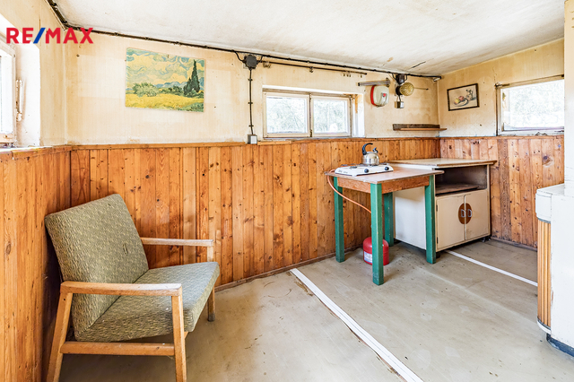 Místo nabízí dostatek soukromí uprostřed přírody a přitom v dosahu veškeré občanské vybavenosti v řádu několika málo minut. Chata se nachází v klidné části obce, jako poslední v řadě rekreačních nemovitostí. Sítě: elektřina (3x16A), vlastní vrtaná studna hloubka 23m, jímku nebo ČOV je potřeba vybudovat. 2 sklepy. Regulace zástavby: zástavba s 1 nadzemním podlažím + podkroví, maximální výška 6 m k hřebeni střechy, max. zastavěná plocha 85 m². V obci je MŠ, ZŠ, pošta, potraviny, restaurace, fotbalové hřiště, knihovna. Dětské hřiště pár kroků od chaty. K Vltavě s přívozem a cyklostezkou se dostanete po 3km krásné procházky. Není v záplavové oblasti. Skvělá dopravní dostupnost Prahy, metro Kobylisy 15 min. autem, zastávka bus linka PID linka 371 a 374 (cca 25min. na M Kobylisy), nájezd na dálnici D8 7min. autem. Součástí prodeje je v ceně spoluvlastnický podíl na přístupové cestě k chatě. V ceně je hotový projekt na přestavbu nemovitosti.
