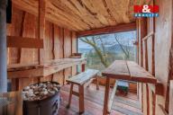Nabízíme k prodeji zděnou dvoupodlažní chatu se zahradou o výměře 830 m², situovanou na slunném jihojihozápadním svahu nad řekou Ohře s krásným výhledem na Šemnickou skálu. Klidná lokalita mezi Pulovicemi a Novou Kyselkou zajišťuje soukromí i dobrou dostupnost. V horním patře se nachází kuchyně s ložnicí a prostornou terasou, spodní podlaží nabízí dvě místnosti, kde ta větší je vhodná jako ložnice či zázemí pro hosty. Na zahradě jsou stupňovité záhony, saunový domek s venkovním bazénkem a výhledem do údolí, dále garáž a kůlna. Parkování pro 2 auta u pozemku. Voda z vlastního vrtu, elektřina zavedena, WC suché. Ideální místo pro rodinný odpočinek v přírodě. Podobné nabídky se zde objevují jen zřídka – doporučujeme osobní prohlídku.