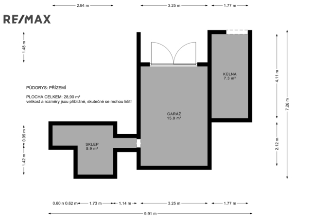 Součástí nemovitosti je sklep s plochou 5,9 m², garáž 15,8 m2 s jedním parkovacím místem, což zajišťuje pohodlné parkování.