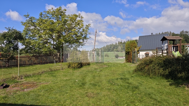 Nabízíme k prodeji chatu s číslem evidenčním, o zastavěné ploše 72 m2 a zahradou 417 m2 postavena na okraji obce Skuheř s krásným výhledem na pole a les. Chata s podlahovou plochu 67 m2 disponuje vstupní verandou, jídelním koutem, obývacím pokojem s kuchyňským koutem, pokojem/ložnicí, velmi prostornou koupelnou s vanou, umyvadlem a toaletou a v podkroví malou místností s možností spaní. Chata je převážně zděná, (přístavba a rekonstrukce chaty včetně střechy a krovů v roce 2001, část střechy nově opravena v roce 2018, část v roce 2025), menší původní dřevěná část je nyní obezděná. Je v ní zavedena elektřina 220v, voda z vlastní studny (vrtaná v roce 2005 včetně nového čerpadla) vedená komplet v plastových trubkách, na pozemku je septik o objemu 4 m³. Topení krbovými kamny. Výhled vybudování obecního vodovodu a kanalizace za cca 2-3 roky, v roce 2024 byla na základě výzvy příslušného obecního úřadu Kamenice podána žádost o vybudování hromadných přípojek. Pozemek nabízí dostatek soukromí, v zadní části je na něm postavena kůlna o ploše cca 8m2. Společná příjezdová cesta z hlavní komunikace cca 50 m dlouhá je také v soukromém vlastnictví dohromady pouze pro 5 chat - každý vlastní pětinový podíl. Chata má nově dělanou střechu asfaltovými pásy. Nový bojler na ohřev vody, plně vybavenou kuchyňku včetně nové lednice, s tím, že v chatě je zakoupena nová kuchyňská linka k budoucí "přestavbě". Je připravena k okamžitému užívání. Hypoteční úvěr je možný. Bližší informace sdělí makléř nabídky.