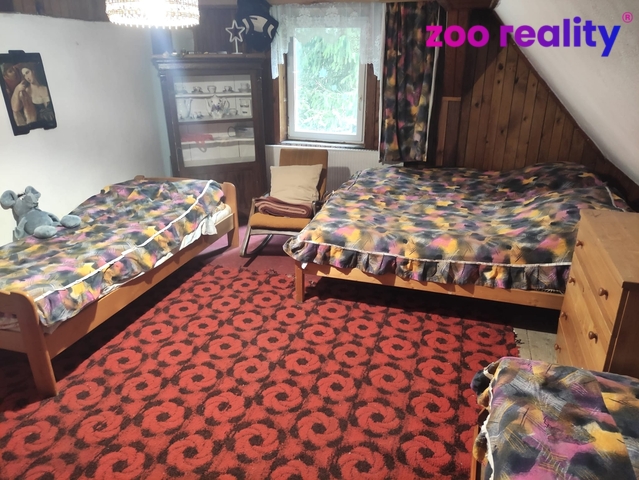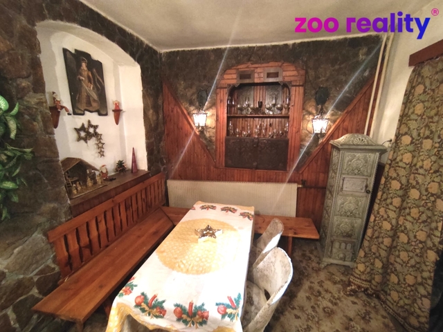 Nabízíme k prodeji chalupu v obci Kovářská, která stojí 25 kilometrů západně od Chomutova na hřebeni Krušných hor v nadmořské výšce okolo 800 metrů v údolí potoka Černá voda. V přízemí se nachází obývací pokoj s jídelnou, kuchyně, koupelna se sprchovým koutem, WC, v patře jsou 3 ložnice a obývací pokoj. Vytápění v domě je řešeno elektrickým kotlem, krbem, krbovými kamny. Dům má malý sklep a garáž. Střecha domu je z kanadského šindele, zahrada není oplocena, po obvodu zahrady jsou zabetonované železné tyče na plot. Pro více info volejte makléři.