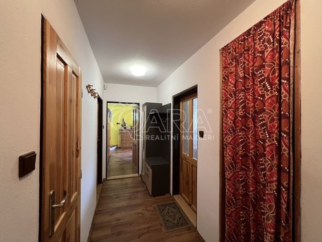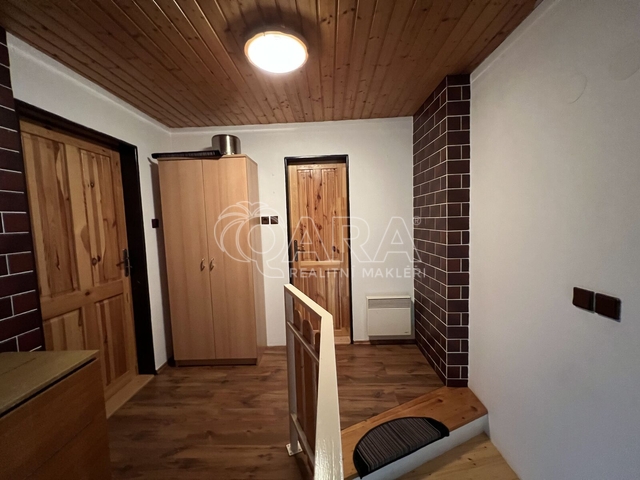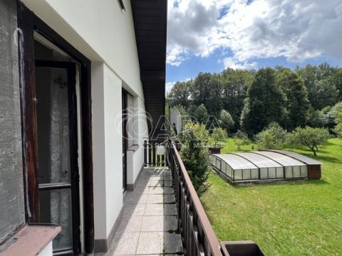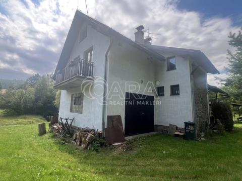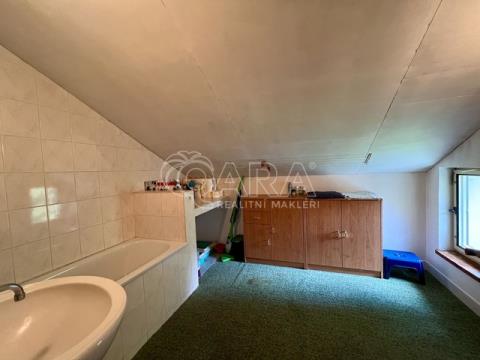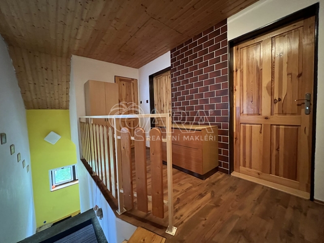 Nabízíme k prodeji dvoupodlažní chalupu v obci Vysoká, část obce Pitárné, který nabízí nespočet možností jeho využítí. Jedná se o cihlový dobjekt s garáží na polosamotě o podlahové ploše 156 m². Jistě vás ohromí krásná zahrada o výměře 6 533 m² s ovocnými stromky, zastřešeným bazénem a regulovaným potokem. Budova byla zkolaudována v roce 2003 a je ze 2/3 podsklepená (40 m²). V prvním podlaží se z chodby dostanete do koupelny, na toaletu, do kuchyně propojené s obývacím pokojem. Zde se nachází krb, díky kterému si vytvoříte příjemnou atmosféru především v chladných měsících. Do patra se jde po schodech do chodbičky, odkud vedou dveře do tří samostatných pokojů s balkony a také do koupelny. Velkým benefitem je také půdní vestavba, na které je možné vybudovat krásné podkrovní pokojíčky, nebo pracovna. Elektřina je v mědi. Teplo a teplou vodu zajišťuje kotel na pevná paliva 4. generace + v každé místnosti jsou přímotopy. Ve sklepě je spousta dřeva připravena (viz foto). Kapacita bojleru na vodu je 180 litrů. Pro odvádění odpadních vod slouží komorová žumpa a dostatek vody je zajištěn z 5,5 m hluboké kopané studny. Okna jsou v celém domě dřevěná. Střecha je zateplená a pokryta bonským šindelem. Jistě využijete také garáž a venkovní chatku se dvěma pokoji, kde je nachystaný přívod vody např. pro kuchyňský kout. Chalupa se prodává včetně veškerého nábytku, vybavení k bazénu i zahradního nářadí. Nachází v krásném a velmi klidném prostředí. Navíc se prodává s veškerým zařízením a vybavením pro údržbu zahrady i bazénu. Regulovaný potok protékající přes pozemek dodává nemovitosti jedinečný půvab. V případě zájmu o prohlídku mě neváhejte kontaktovat, velmi ráda vám tohle krásné místo ukážu.