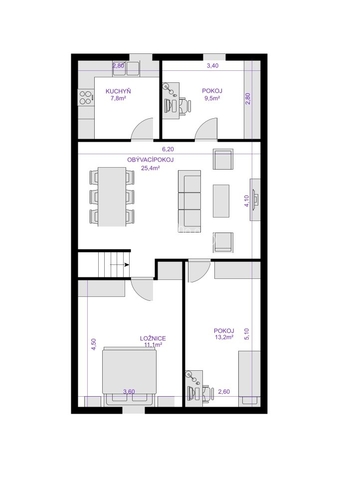 Chalupa je patrová, se dvěma podlažími a poskytuje 6 pokojů, což ocení především rodiny nebo hosté hledající pohodlí a prostor. V přízemí naleznete vstupní halu s krbem, prostorný obývací pokoj, ložnici, kuchyň, koupelnu a samostatnou toaletu. V prvním patře se pak nachází další kuchyň a čtyři pokoje. S užitnou plochou 150 m² a zastavěnou plochou 95 m² nabízí tato nemovitost dostatek místa pro všechny.