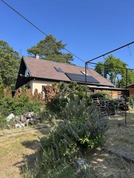 Nabízíme k prodeji samostatně stojící celoročně obyvatelnou chalupu s číslem evidenčním, nacházející se v klidné a vyhledávané rekreační oblasti Brno Kníničky. Chalupa je dispozičně řešena jako 4+KK: Přízemí: vstupní chodba, prostorný obývací pokoj s kuchyňským koutem a vstupem na terasu, komora, ložnice se samostatným vstupem na zahradu, koupelna, samostatné WC Podkroví: dvě ložnice (jedna s balkonem), druhá koupelna s WC Sklep: dílna a zděná nádrž na vodu Na terasové části domu je vybudované krytované posezení s udírnou, grilem a zahradním nábytkem ideální místo pro relaxaci a klidné letní večery s rodinou či přáteli. Na pozemku je zastřešené parkovací stání pro dvě vozidla. Dům je částečně podsklepený, napojený na elektrickou síť. Voda z vlastní studny, odpadní vody svedeny do jímky. Vytápění zajišťuje elektrický kotel, krb v obývacím pokoji a klimatizační jednotka. Fotovoltaické panely slouží k ohřevu vody. Stavba je dřevostavba na betonovém a zděném základu, střecha sedlová, okna nová dřevěná trojskla, zateplená fasáda. Zahrada je jako z pohádky. Celý dům je umístěn uprostřed rozlehlé a pečlivě udržované zahrady. Zahrada nabízí naprosté soukromí, krásné zelené plochy, vzrostlé okrasné dřeviny, ale i plodící ovocné stromy. Jedná se o ideální místo pro bydlení, relaxaci, odpočinek i rodinné aktivity kombinace přírody, komfortu a klidu jen pár minut od Brněnské přehrady.