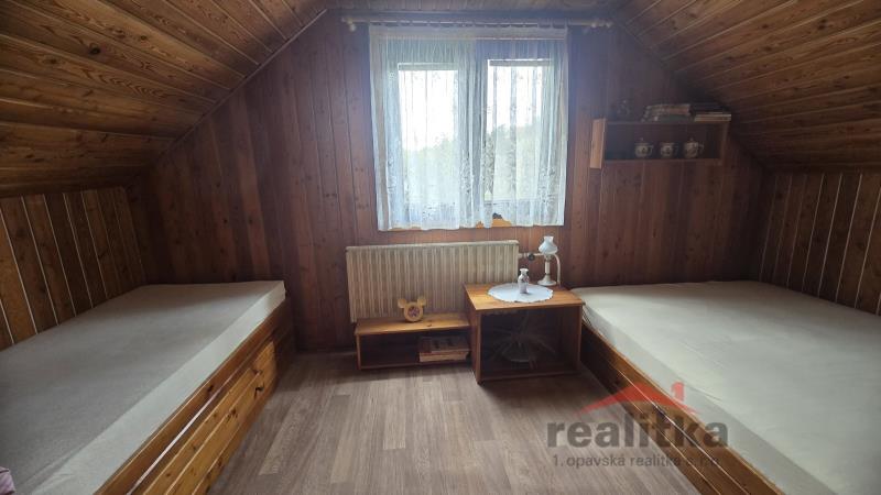Nabízíme prodej krásné chaty se zahradou v obci Pocheň, Brumovice u Opavy. Chata je 50 let obývaná a velmi dobře s láskou udržovaná. Před 4 lety došlo ke kompletní rekonstrukci střechy včetně zateplení, výměny všech oken za plastové, jsou zde nová krbová kamna k vytápění celé chaty přes radiátory. V 1.NP chaty se nachází hlavní obývací místnost, jídelna, kuchyň, koupelna se sprchovým koutem a umyvadlem, wc a jeden pokojíček. Po dřevěném schodišti se vstupuje do 2.NP, kde jsou dva další pokojíčky včetně úložných prostorů na chodbičce. V chatě zůstává téměř veškeré zařízení. Před vstupem do chaty je kryté posezení a kolem chaty je krásná, udržovaná zahrada s ovocnými stromy. Chata má vlastní vrt na vodu. Na pozemku je možnost parkování a celý pozemek je chráněn v soukromí přes vzrostlý živý plot. Kousek od chaty je pocheňská přehrada k relaxačním procházkám. Zájemci o prohlídku dle domluvy s paní Gratzovou.
