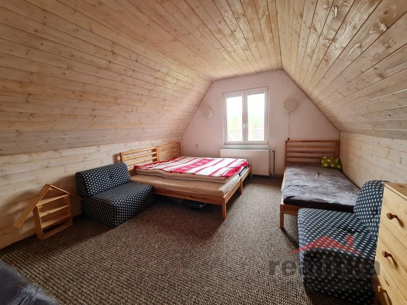 Prodej rekreační chaty u vodní nádrže Pocheň – klid, příroda a rybaření. Nabízíme k prodeji útulnou chatu v malé rekreační obci Pocheň (okres Opava). Vesnička se nachází u stejnojmenné vodní nádrže, která je oblíbeným místem pro rybaření a odpočinek v přírodě. V obci žije jen několik stálých obyvatel, takže zde najdete naprostý klid, krásnou okolní přírodu, lesy, louky i cyklostezky. Díky nové silnici z Brumovic je dostupnost velmi dobrá – do centra Opavy se dostanete do 20 minut. Chata prošla od roku 2017 řadou rekonstrukcí a modernizací: - zděná stavba - nové rozvody vody a odpadů - plastová okna - částečně zateplená fasáda - nové ústřední topení v mědi s kotlem na pelety se zásobníkem - možnost dálkového ovládání kotle přes mobilní aplikaci - nová jímka o objemu 10 m³ - kamerový bezpečnostní systém - velká zahrada, pozemek má celkem 1169 m2 Zdroj pitné vody je z vlastní studny, která byla odborně vyčištěna. K dispozici je také laboratorní rozbor potvrzující vysokou kvalitu vody. Interiér chaty: V přízemí se nachází obývací pokoj s kuchyní, ložnice, koupelna s WC a zádveří. Podkroví nabízí dva další pokoje vhodné jako ložnice nebo pokoje pro hosty. Kuchyň je vybavena novou kuchyňskou linkou se sklokeramickou varnou deskou, horkovzdušnou troubou a digestoří. V přízemí jsou nové dřevěné podlahy. V chatě jsou také kachlová kamna napojená na rozvod topení jako druhý zdroj vytápění a klimatizace s funkcí topení. Z obývacího pokoje je vstup na novou dřevěnou zastřešenou terasu. Další zastřešené posezení se nachází na zahradě. Součástí nemovitosti je také garáž, kotelna s novým komínem a sklad. Chata se prodává včetně většiny vnitřního vybavení a nářadí (vyjma pianina a osobních věcí). Ideální místo pro rekreaci, rybaření i klidné víkendové pobyty v přírodě.