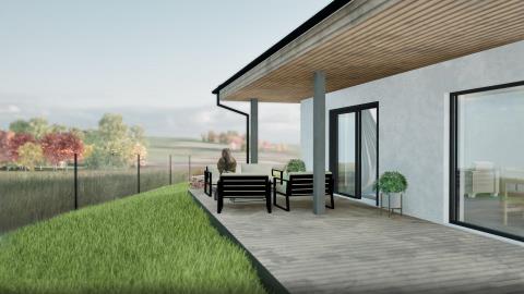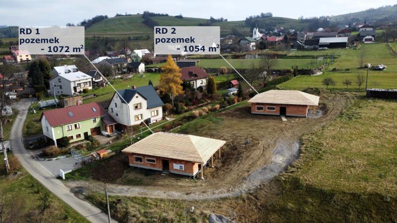Nabízíme k prodeji novostavbu (hrubou stavbu), která byla vystavěna v roce 2025, na slunném pozemku v katastru obce Bukovec. Jedná se o jednopodlažní rodinný dům typu bungalov o dispozičním řešením 3KK - vystavěny na zastavěné ploše 121 m2 a na pozemku o plošné výměře 1072 m2. Parametry nemovitosti: - Podlahová plocha 89 m2 - Dispoziční řešení 3KK a nalezneme zde: - Zádveří 6,37 m2 - Chodbu 6,85 m2 - Obývací pokoj + kuchyni 34,18 m2 - Koupelnu 6,13 m2 - Ložnici 13,27 m2 - Pokoj 13,58 m2 - Technickou místnost 8,2 m2 Zásadní výhodou této nemovitosti je zejména její umístění v klidné části obce, s krásným výhledem na panorama Beskyd a do širokého okolí. Jako konstrukce obvodových stěn byly použity tepelněizolační cihly s minerální izolací Porotherm 38 T Profi P8. Na střeše bude položena plechová krytina v barvě antracit. Vytápění je plánováno tepelným čerpadlem. Zdroj vody je z vlastní studny, která je již vybudovaná. Odpady budou řešeny do ČOV. Příjezd k rodinným domům je řešen po obecní komunikaci a dále po soukromém pozemku, na kterém budou mít noví vlastníci spoluvlastnický podíl o velikosti 1/2 pozemku o výměře 112 m2. Dům je možno koupit ve stavu stávajícím, případně po dohodě s majitelem s možností dostavby do jakéhokoliv stavu i celkového dokončení. Koupi domu můžete financovat pomocí hypotéky, s jejímž vyřízením vám rádi zdarma pomůžeme. Pro více informací či domluvení prohlídky volejte makléři.