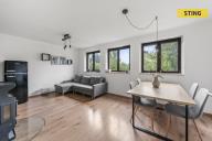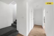 Dominantou přízemí je prostorný obývací pokoj propojený s kuchyní a jídelním koutem. Interiér je vybaven moderní kuchyňskou linkou, kvalitními spotřebiči a stylovým nábytkem. O útulnou atmosféru se postarají krbová kamna, která zpříjemní nejen zimní večery. V celém přízemí je podlahové topení.