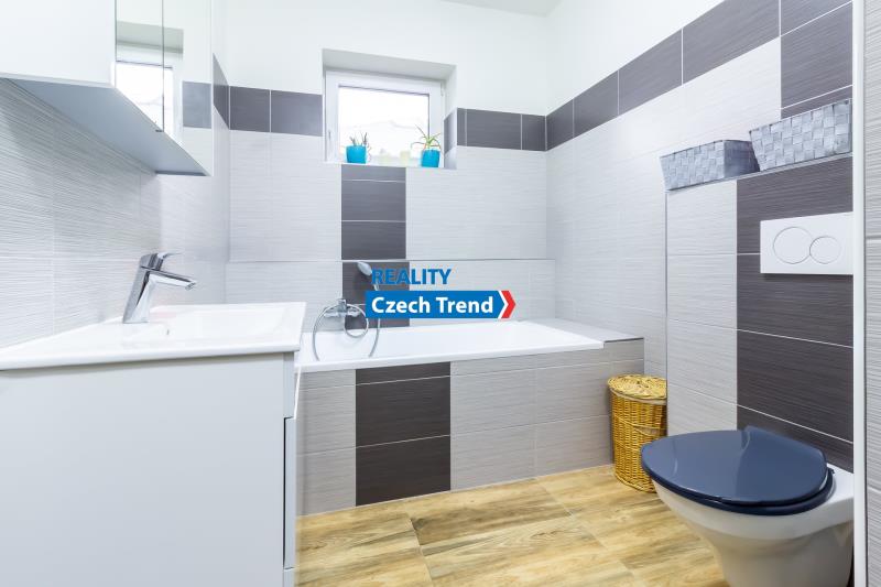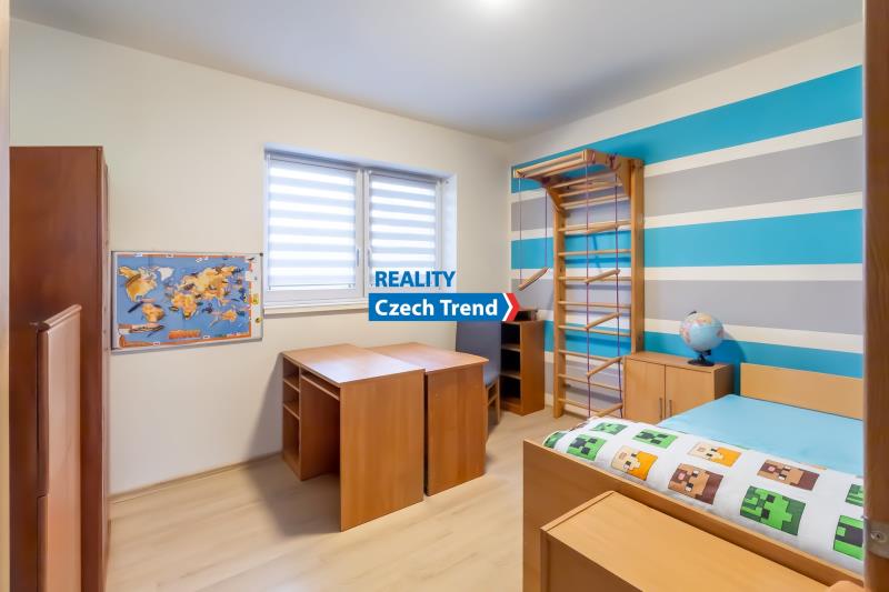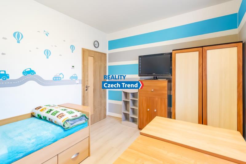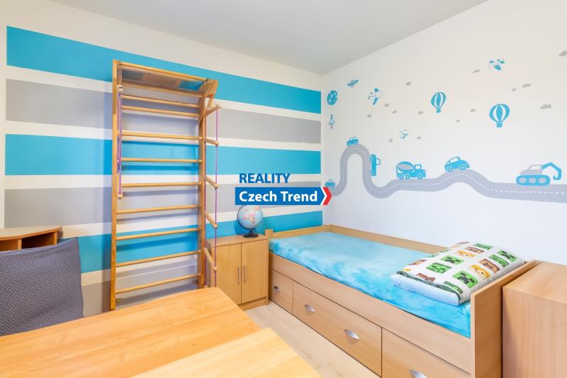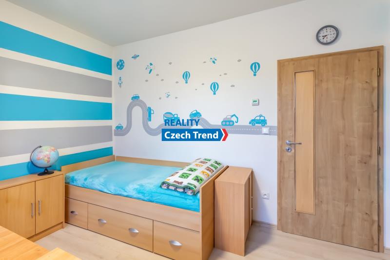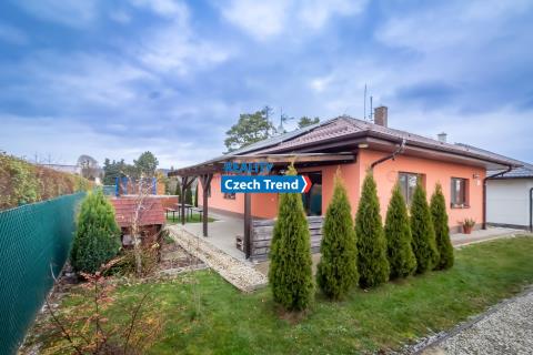 Nabízíme Vám k prodeji novostavbu bungalovu o dispozici 4+kk s podlahovou plochou 115 m2, s terasou a místem na parkování pro dva automobily. V domě se nachází prostorný obývací pokoj s kuchyňským koutem a vstupem na terasu a do zahrady, dětský pokoj, pokoj pro hosty možný využít jako další dětský pokoj nebo pracovnu, ložnice s šatnou, koupelna s vanou i sprchovým koutem. Ve vstupní chodbě je samostatná toaleta a technická místnost. Další technická místnost se nachází z druhé strany domu, do které je vstup ze zahrady. Pohodlné bydlení dále zajišťuje klimatizace zn. LG. Velkým plusem je možnost využití skladování věcí v prostorné půdě, na kterou je vstup po výklopném žebříku z chodby.