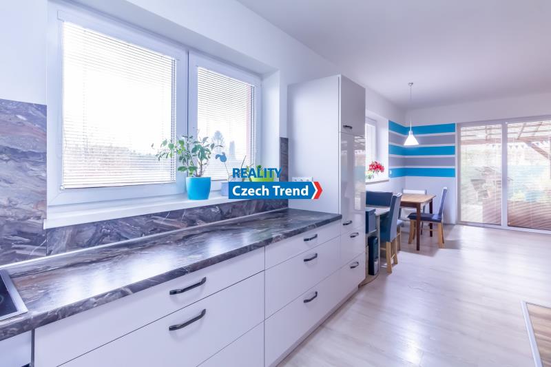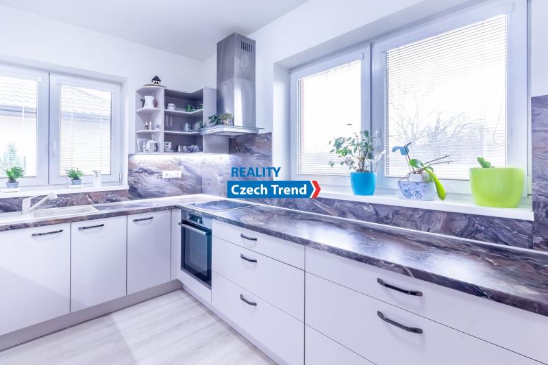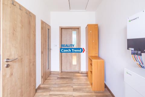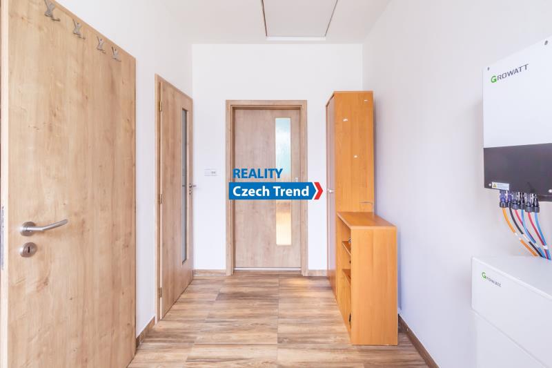Kromě promyšlené dispozice se můžete těšit na celou řadu moderních prvků. Vytápění a ohřev vody zajišťuje tepelné čerpadlo (výkon 8kW, zn. Viessmann) v kombinaci s teplovodním podlahovým topením, což spolu s krbovými kamny zn. Romotop zaručuje nízké provozní náklady. Dalším upgradem úspory nákladů je fotovoltaika s výkonem 6,3 kWp, baterií 10kW zn. Growatt a 2x Wallbox. Kvalitní německá trojskla, zateplené základy, v podlaze polystyren, termoizolační ytong 45 cm, střecha zateplena 27 cm difúzní pěnou. Dalším nadstandardním prvkem je zahradní domek na pozemku v zadní části domu, o půdorysu 5 x 3 m, s ocelovou konstrukcí, zateplenou střechou a betonovou podlahou. Dům kolaudovaný před 8 lety je kompletně hotový a připravený k nastěhování.