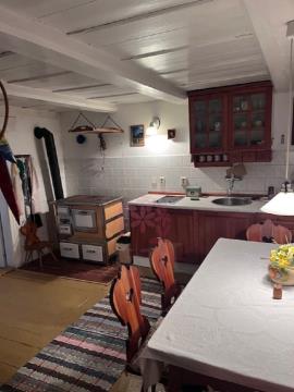 Venkovská stylová chalupa, která si uchovala původní ráz a atmosféru starých časů. Nemovitost je ideální pro milovníky klidu, přírody a tradiční architektury. Chalupu a bytovou jednotku umístěnou nad garáží (kolaudace v roce 1991), dělí zahrada se vzrostlými stromy. Chalupa je z části podsklepená (19 m2) - dispozice přízemí - vstupní chodba, kuchyň s jídelnou, obývací pokoj, koupelna a samostatné WC v komoře o výšce 2,6 m. původním schodištěm do I.patra, kde jsou dva prostorné pokoje o celkové výměře 87 m2 s výškou stropu 2,2 m. - užitná plocha chalupy 174 m2. - užitná plocha garáže a patra 144 m2. - voda do domu je z vlastní kopané studny, voda ze studánky. - stavení je napojené na el.síť. - zdrojem teplé vody je el. bojler. - topení na tuhá paliva a přímotopy. Konstrukce jsou zděné a zčásti dřevěné (napuštěné impregnací). Objekt s garáží, která slouží jako dílna. Nad garáží vybudovaná bytová jednotka - obývací pokoj, ložnice, jídelna a v patře další pokoj s možností pronájmu či jiného podnikatelského záměru. Vytápění na tuhá paliva. Dřevěná kůlna, jejíž zastavěná plocha činí 16 m2.