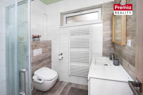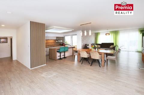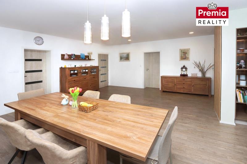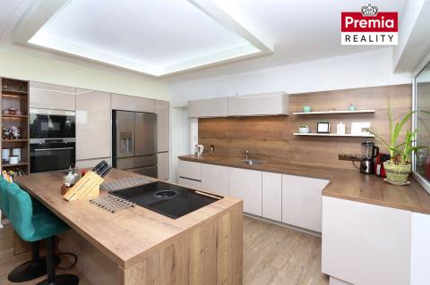K prodeji nabízíme velkoryse řešenou samostatně stojící novostavbu rodinného domu 6+kk s komerčním prostorem o zastavěné ploše 431 m2 v obci Strachotice, vzdálené 8 km jihovýchodně od města Znojma. Moderní dům je realizován jako zděná stavba z kvalitních materiálů a poskytuje komfortní bydlení s nízkými provozními náklady. Hlavní obytný prostor tvoří světlý obývací pokoj propojený s kuchyňským koutem o výměře 76 m2. Kuchyňská linka německého studia Kitchen Story je osázena značkovými spotřebiči. Z obývacího pokoje je přímý vstup na prostornou terasu o výměře 70 m2 s bazénem 8x4 m. Moderní pojetí domu je řešeno tak, že každý ze čtyř pokojů má vlastní šatnu, dům dále disponuje dvěmi koupelnami. K domu přísluší místnost o výměře 30 m2 v současné době využívána ke komerčním účelům. Dům je napojen na veškeré IS, vytápění je zajištěno elektrickým podlahovým topením, lokálně je možno dům vytápět krbovými kamny v obývacím pokoji. V technické místnosti je příprava na tepelné čerpadlo. Součásti prodeje je i vinný sklep s cihlovou klembou o délce 15 m, nacházející se naproti rodinného domu. Pohodovou atmosféru bydlení doplňuje okrasná i užitková zahrada. Na pozemku je provedena příprava na vrtanou studnu jako druhý zdroj vody. Před domem je prostorná dlážděná plocha pro parkování osobních aut. Dům je vhodný pro rodiny, které vyhledávají dostatek prostoru i pro ty, kteří dokáží využít veškerého potenciálu kterou nemovitost nabízí. Obec Strachotice disponuje dobrou občanskou vybaveností: mateřská školka, základní škola, prodejny, restaurace, lékař, pošta. Díky IDS dobrá autobusová dostupnost směr Znojmo. Průkaz energetické náročnosti : B* (velmi úsporná)