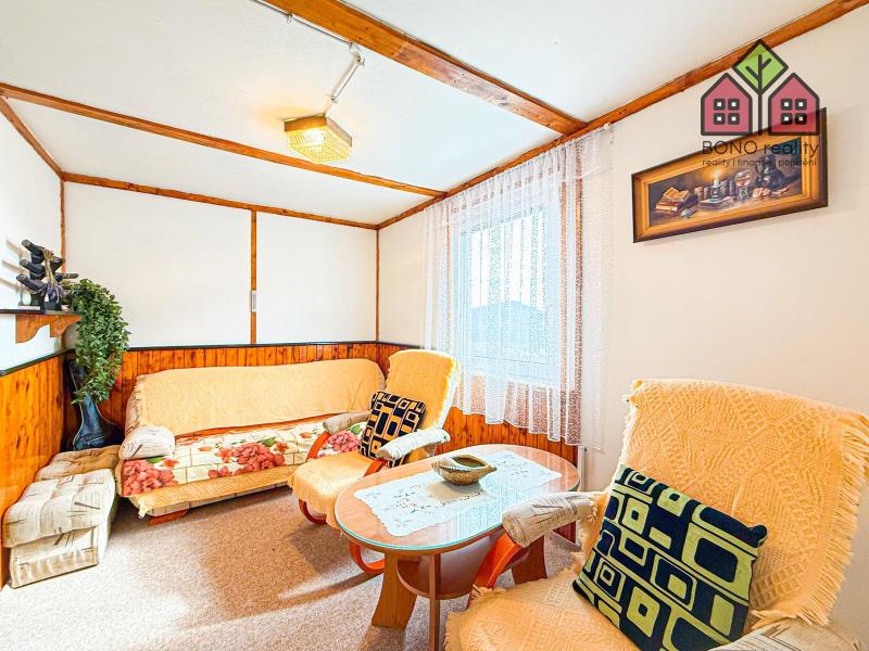 Chata o podlahové ploše 90 m2 se skládá ze dvou obytných podlaží. V přízemí je situovaný obývací pokoj s kuchyňským koutem, jehož dominantou jsou krbová kamna a také koupelna se sprchovým koutem a umyvadlem. V prvním patře umístěné dva samostatné pokoje, jedna společná část, chodbička a toaleta. Chata je ve velice dobrém, stavebně technickém stavu. V průběhu let procházela revitalizacemi a doposud je velmi pečlivě udržovaná. Chata je smíšené konstrukce, zateplená, osazená plastovými okny a vybavená novými rozvody inženýrských sítí. Má sedlovou střechou a vystavěná je na zděných základech. Její součástí je také prostorná zastřešená terasa o ploše 13 m2.