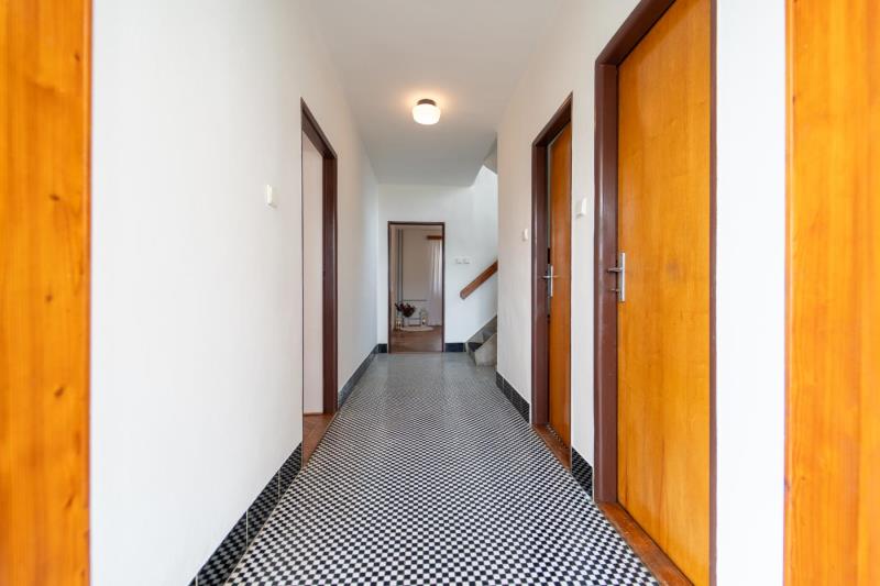 S radostí Vám představím tento dvoupatrový prostorný dům se zahradou a malou provozovnou, která sloužila jako prodejna masa. Je vhodný buď pro velkou rodinu nebo pro dvougenerační bydlení. Jsou zde dvě obytná patra, pod celým domem je sklep, jde využívat částečně jako garáž. V prvním patře je prostor pro kuchyň s jídelnou, obývací pokoj, ložnice, koupelna s WC, spíž. V druhém patře je obývací pokoj s přípravou pro kuchyňský kout, ložnice se šatnou, pokoj, vstup na terasu a koupelna s WC. Zahrada nabízí spoustu prostoru pro odpočinek a relaxaci, případně se zde dá vytvořit i záhonek na pěstování domácí zeleniny, je zde i skleník. Na pozemku je zděná garáž a další drobné stavby. Dům byl zkolaudovaný v roce 1970.