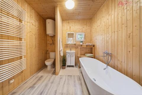 Nabízíme k prodeji novostavbu chaty uprostřed lesa v k.ú. Malá Lhota u Valašského Meziříčí a obci Velká Lhota. Chata Vás nadchne svou útulnou atmosférou a úžasnou terasou s výhledy do okolí. Dispozice je 2+1 s možností uvažované přístavby do patra. Chata je celodřevěná, zateplená a má zděné základy. Zastavěná plocha je 56m2, užitná plocha je 79m2 a zahrada má rozlohu 744 m2. Chata je napojena na vlastní studnu, odpady jsou svedeny do septiku, topení je tuhými palivy, střecha plechová, okna plastová. Příjezd je zajištěn po vlastní komunikaci. Zahrada je mírně svažitá, zařídit si ji nový majitel může dle svých představ, dobře se tady daří včelám, původní majitelé zde měli včelí úly a skleník. V případě zájmu o prohlídku, prohlídky zajišťuje realitní makléřka, děkujeme! Zajistíme také financování s nejvýhodnější úrokovou sazbou.