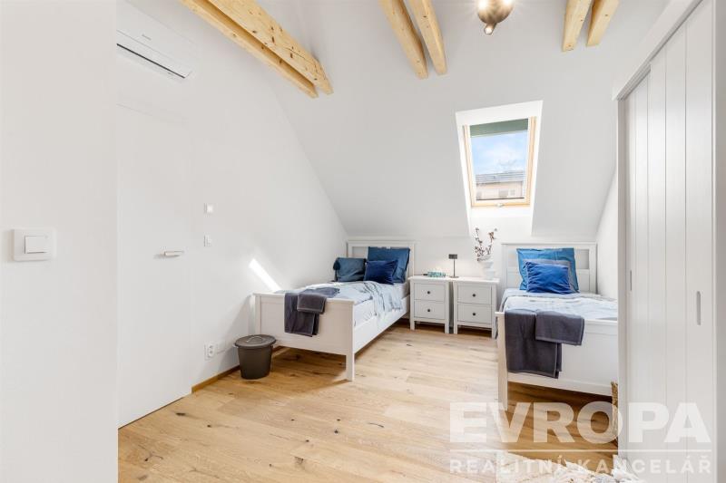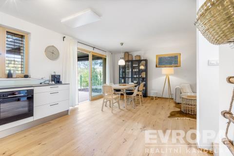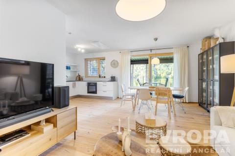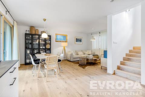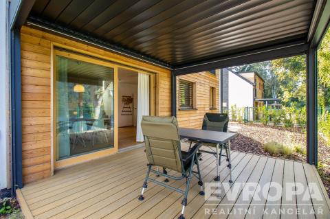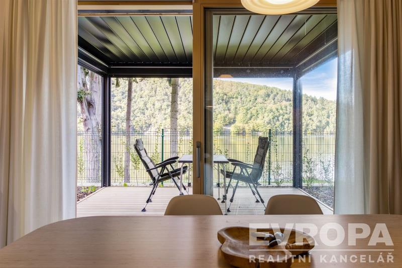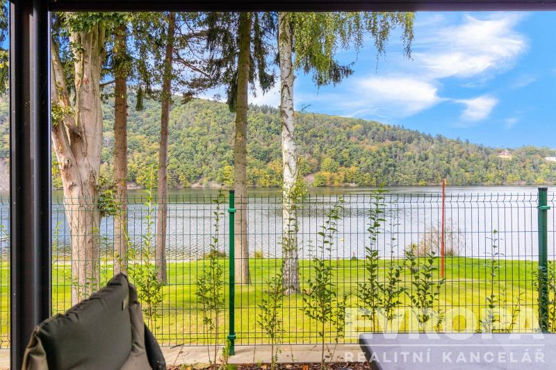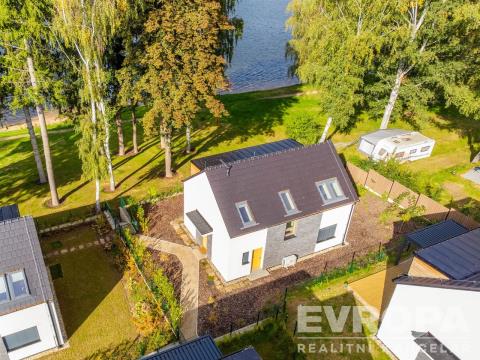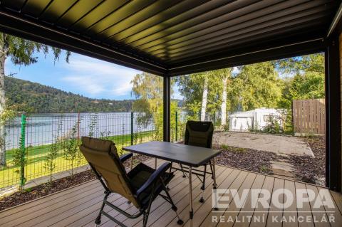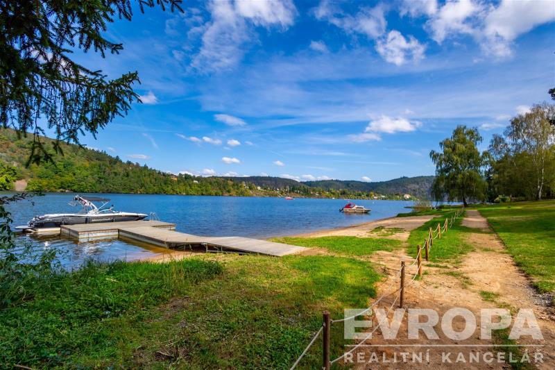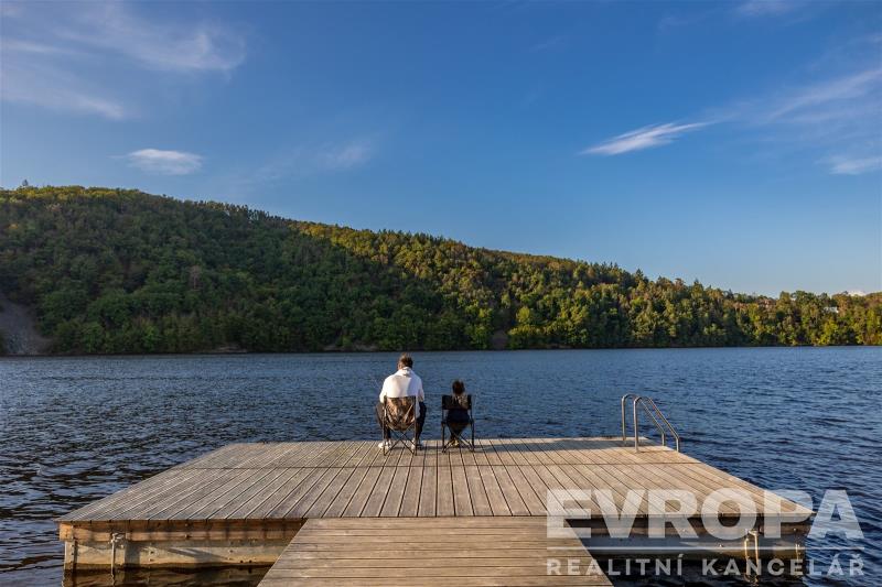 Nabízíme k prodeji moderně zařízenou chatu (112,8 m2) s pozemkem (270 m2) v první řadě od pláže v luxusním areálu Lakeside Resortu Slapy. Od tohoto domu je to cca 30 metrů přímo na písečnou pláž Slapské přehrady. Dům se v prvním patře skládá z předsíně, samostatného WC, šatny, technické místnosti a prostorného obývacího pokoje s kuchyňským koutem. V druhém patře jsou tři ložnice a koupelna s wc. Chata je z tepelně izolační broušené cihly Porotherm 38 EKO+ Profi a na střechách je pálená designová taška Tondach Figaro Engoba. Areál je oplocen a přístupný pouze rezidentům. Na pláž lze vstoupit brankou ve spodní části areálu. Rezidenti mohou využívat vyhřívaný bazén, venkovní posilovnu, ping pongový stůl, dětské hřiště, molo, nebo vyplout na přehradu se sdílenými paddleboardy a kánojemi. Areál leží na samém břehu slapské přehrady, jen pár kroků od písečné pláže. Lokalita nabízí po celý rok nespočet možností jak trávit čas s rodinou a přáteli. Letní sezóna je zde rájem pro milovníky koupání a vodních sportů. Na Nové Živohošti to tepe životem. Zažijte vodní lyžování, windsurfing, jachtaření, potápění nebo paddleboarding. Pět minut chůze od areálu leží tenisové kurty a ani na golf to není daleko. Stačí dvacet minut jízdy autem a ocitnete se na Golf&Spa Resort Konopiště. S dětmi se určitě vypravte pozdravit hradní medvědy na Konopiště nebo vyražte za dobrodružstvím do Lanového parku Slapy. Můžete otestovat i dětské atrakce ve Farmaparku Soběhrdy. NYNÍ K NASTĚHOVÁNÍ!!! Pro více informací kontaktujte prodejce.