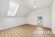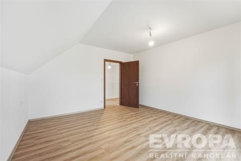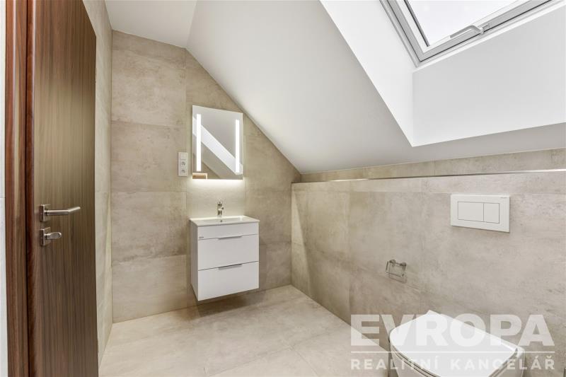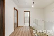 V patře jsou tři ložnice a koupelna s vanou a toaletou. Z horní chodby se přes výsuvné a skládací dřevěné schodiště vstoupí, díky sedlové střeše, do krásného půdního prostoru, který nabízí další užitnou plochu.