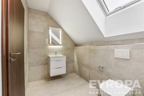 V interiéru narazíte na kvalitní materiály a moderní technologie. Vytápěné podlahy, kvalitní dveře, mramorové schodiště, velkoformátové obklady, stylová sanita, okna s izolačním trojsklem, HS Portál a elektrické venkovní žaluzie.