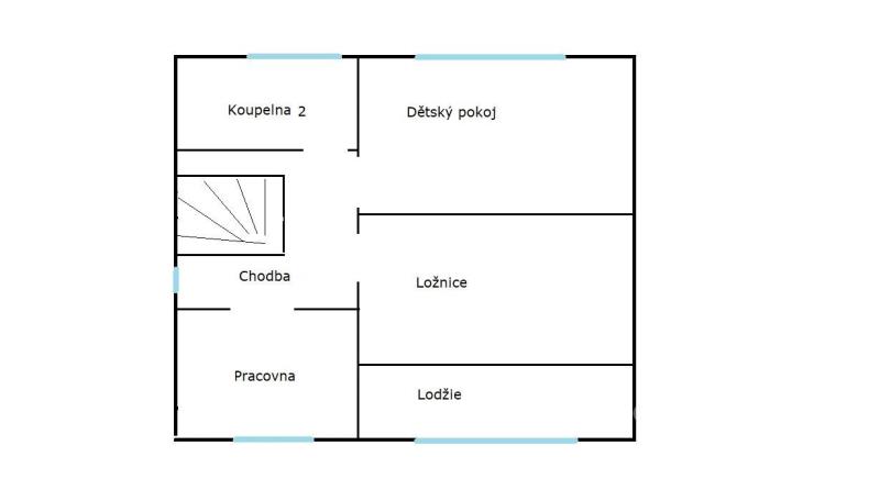Druhé patro tvoří prostorná ložnice cca 20 m2 s balkonem do ulice, dětský pokoj 18 m2, pokoj 2 cca 10 m2 a stejně velká koupelna.