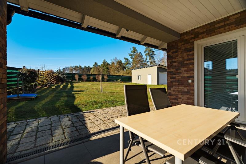 Venku vás čeká terasa ideální pro letní večery a hned dvě garáže. Jedna z nich je samostatná a vybavená krbovými kamny – perfektní jako dílna, zázemí pro podnikání nebo prostor, který lze snadno upravit na menší domek pro hosty.