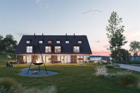 Představujeme řadový dům s terasou a zahradou, který je součástí prémiového resortu VISION LIPNO, přímo u břehu Lipna.
