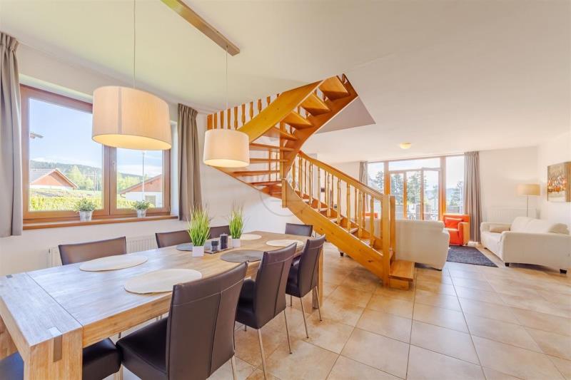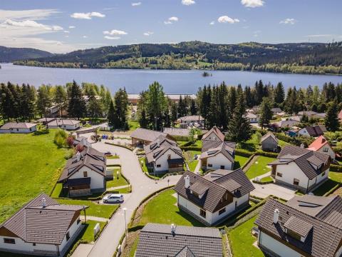 Jedná se o největší objekt v areálu Residence Lipno. Správcovská společnost zajišťuje provoz a údržbu areálu, včetně infrastruktury, recepce a dětské hřiště. Platí se cca 40.000, Kč ročně za vše (internet, údržba, veř. osvětlení, odpad atd.) kromě spotřeby elektřiny, která je zvlášť. Lze využít efektivní správy pronájmu nemovitosti v době Vaší nepřítomnosti. Předmětem prodeje je obchodní podíl účelově založené společnosti, která dům výlučně vlastní.