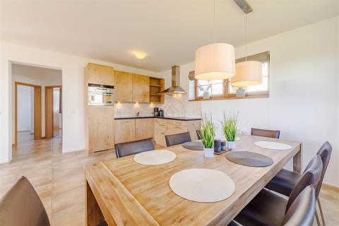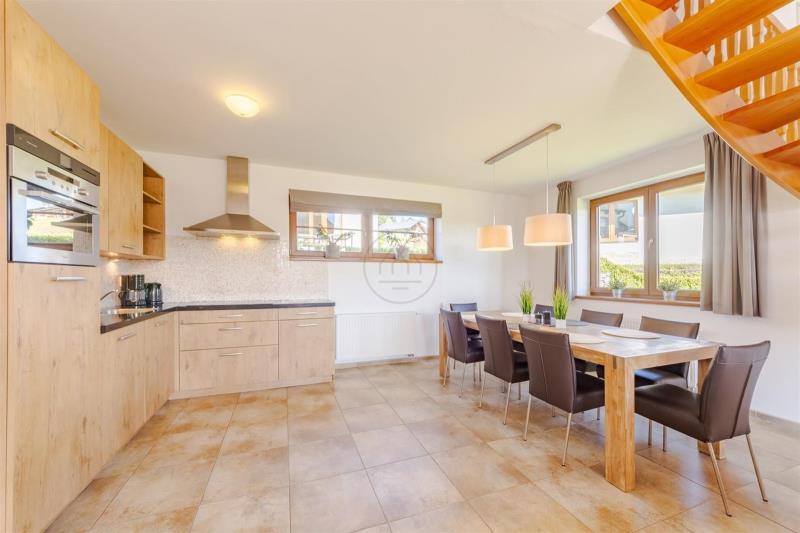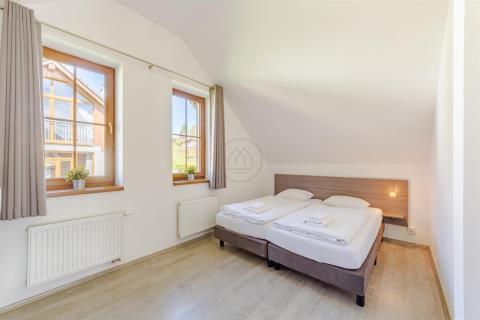 Velkorysý dům s kapacitou až 14 osob je vhodně navržen k uspokojení nejnáročnějších potřeb budoucích uživatelů a poskytuje exkluzivní místo k rekreaci, odpočinku, nebo trvalému bydlení. Objekt disponuje pěti ložnicemi, třemi koupelnami, zádveřím, skladem a prostorným obývacím pokojem s kuchyní, kde jde vstup na slunnou terasu s výhledem na jezero.