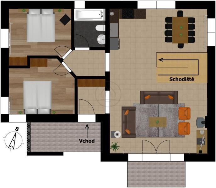 Díky velkým oknům a orientaci na jih je v interiéru spoustu světla, prostor působí velice otevřeně a útulně. V ceně je kompletní vybavení, nábytek a elektrospotřebiče, dále k dispozici vyhrazené parkovací stání. Dům má inteligentní vytápění, které se ovládá telefonem. Výhodou jsou krbová kamna, vinylové podlahy, obložené sokly pohledovým kamenem a dřevěné obložení štítu. Na zahradě je také zahradní domek a sklad.