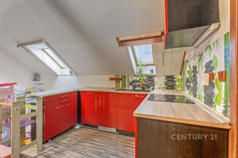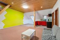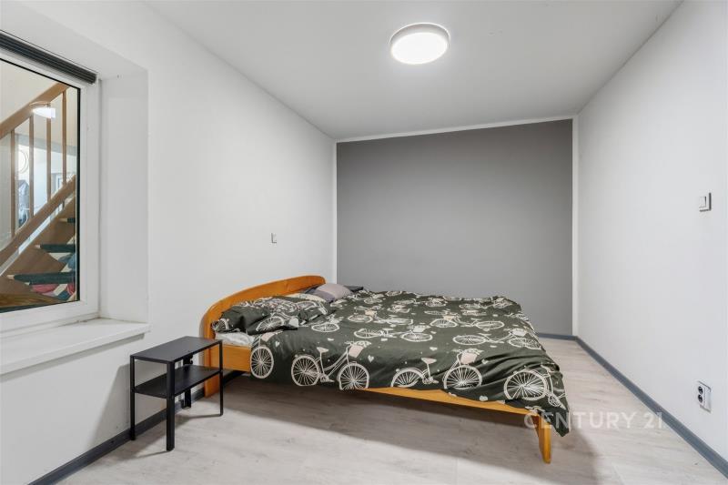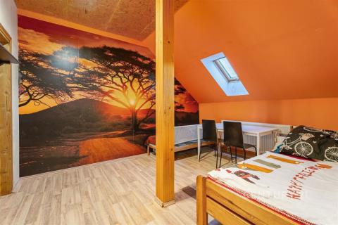 V přízemí domu se nachází vstupní chodba, společenská místnost sloužící jako obývací pokoj, ložnice, kuchyně s jídelnou, komora a koupelna s toaletou. Podkroví nabízí další společenskou místnost s kuchyňským koutem, koupelnu s WC, šatnu, prostorný pokoj a půdu, což poskytuje dostatek flexibility pro dvougenerační bydlení, oddělení soukromí nebo kombinaci vlastního bydlení a investičního pronájmu.