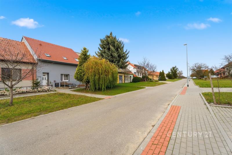 Dominantou je rozlehlá oplocená zahrada o výměře přes 1 000 m², kde můžete vytvořit rodinné zázemí, relaxační zónu, dětské hřiště, prostor pro pěstování nebo třeba bazén.