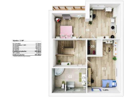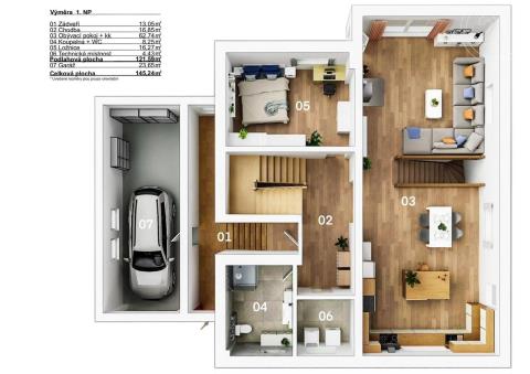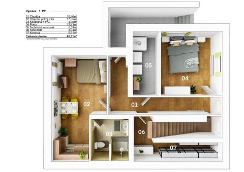V suterénu domu se nachází plně vybavený apartmán, který majitelé úspěšně pronajímají. Roční příjem z jeho provozování dosahuje až 250 000 Kč, a lze ho kromě jiného použít třeba i ke splácení hypotéky.