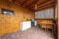 Majitelé a jejich přátelé milují posezení pod uzavřenou pergolou, kde je zřízena malá kuchyňka s napojením na elektřinu, lednicí i umyvadlem – zkrátka všechno, co potřebujete, aby mohla Vaše „párty“ kdykoli začít.