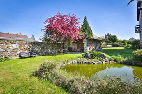 Zahrada o rozloze 1274 m² je zelenou oázou, kde najdete klid a prostor k odpočinku. Udržovaný trávník, vzrostlé stromy, zahradní jezírko a zákoutí pro posezení vytvářejí ideální prostředí pro relaxaci, rodinné oslavy i dětské hry.
