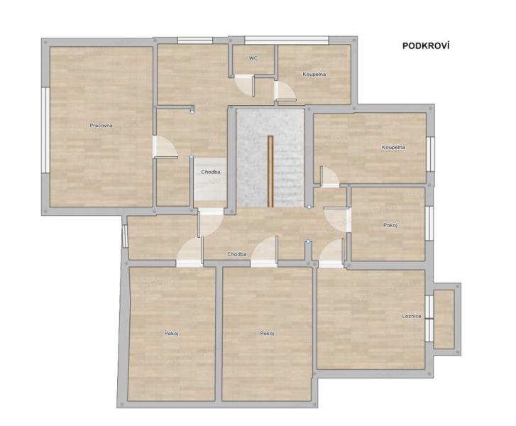 • Rozlehlá půda s možností dalšího rozšíření (např. atelier, sklad sezónních věcí, herna)